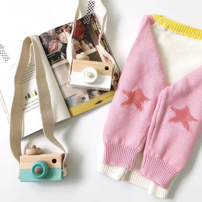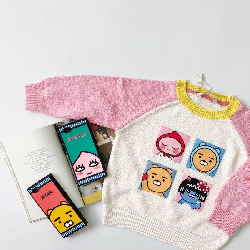 (Joe's) Autumn Winter New Pint Girl Middle Children Pink Splicing Four-Palace Lattice Cartoon Printed Pure Cotton Thread Sweaters