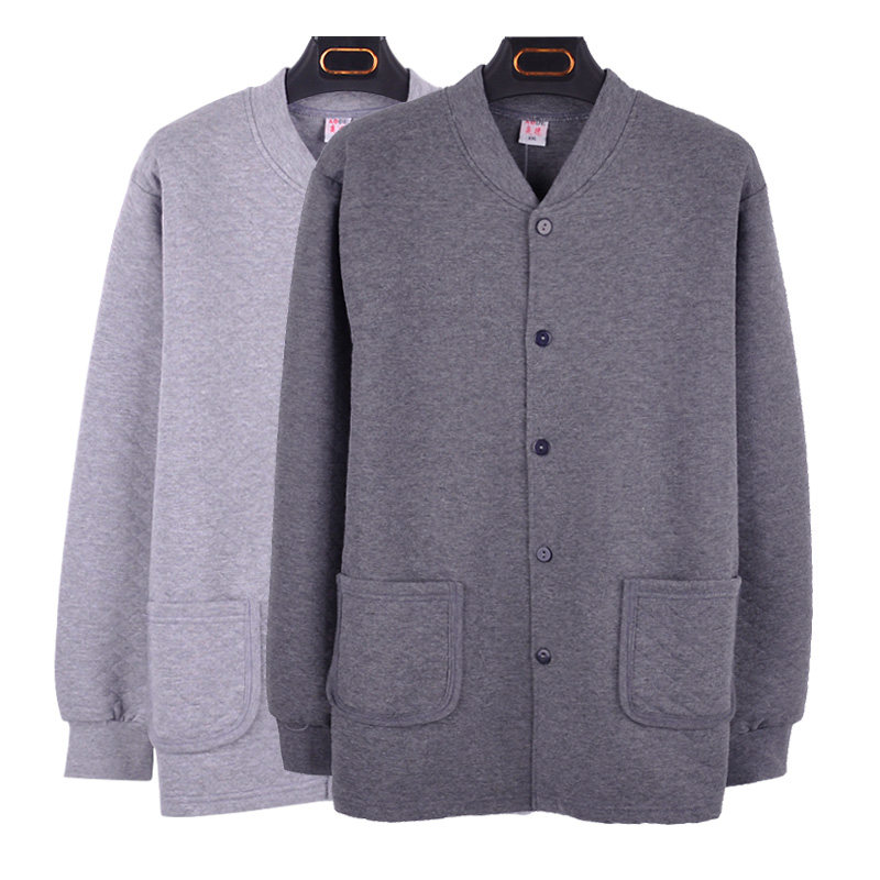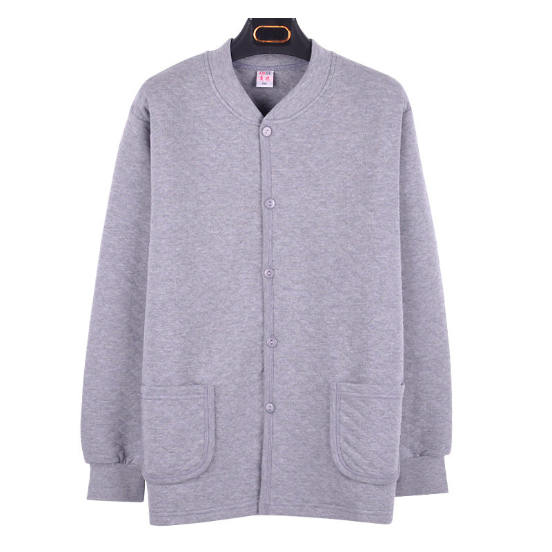 Middle-aged and elderly men in winter plus size three-layer quilted thick thermal underwear cardigan top button-down thin cotton jacket loose