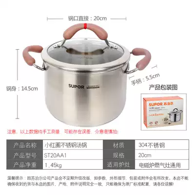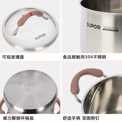 Supor soup pot 304 stainless steel pot Household soup porridge ramen pot Gas induction cooker Universal 20 22cm