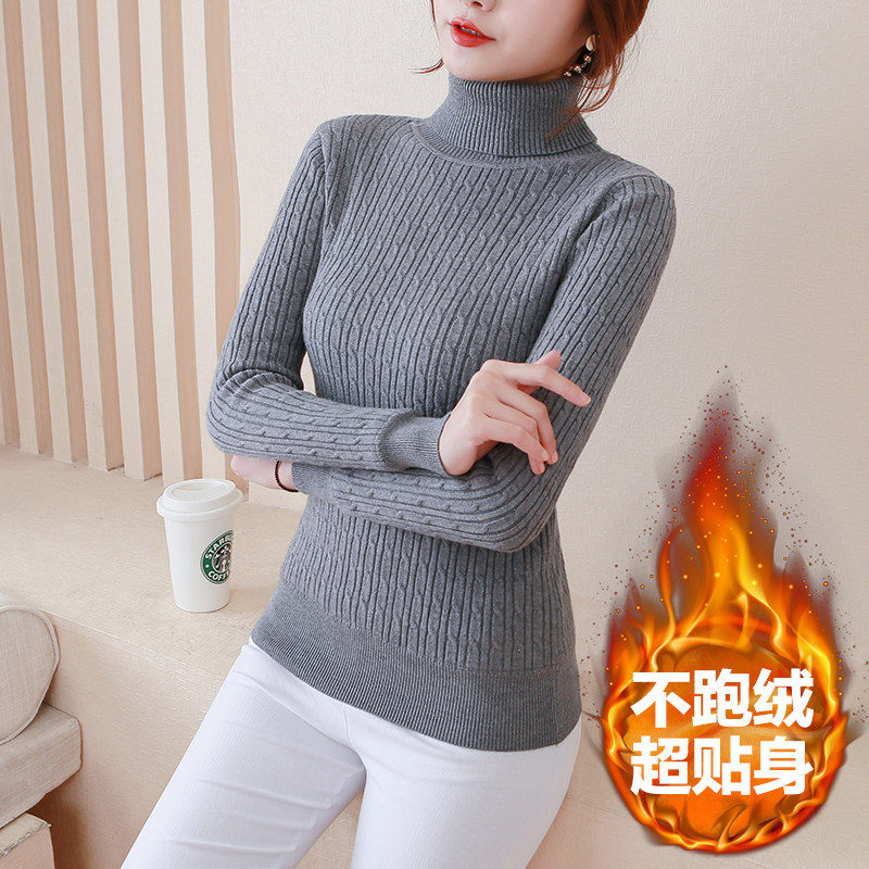 Plus velvet thick sweater women's high-neck twist bottoming tight-fitting knitted sweater winter women's warm clothes top
