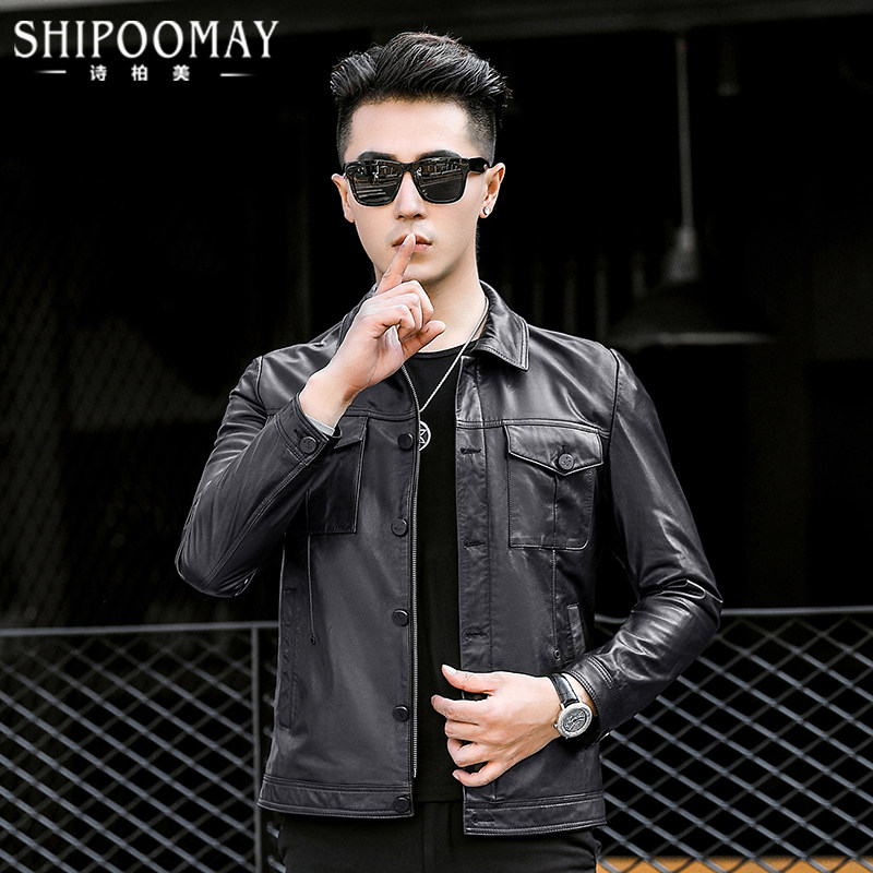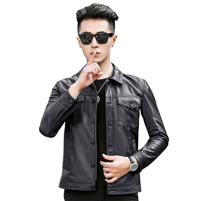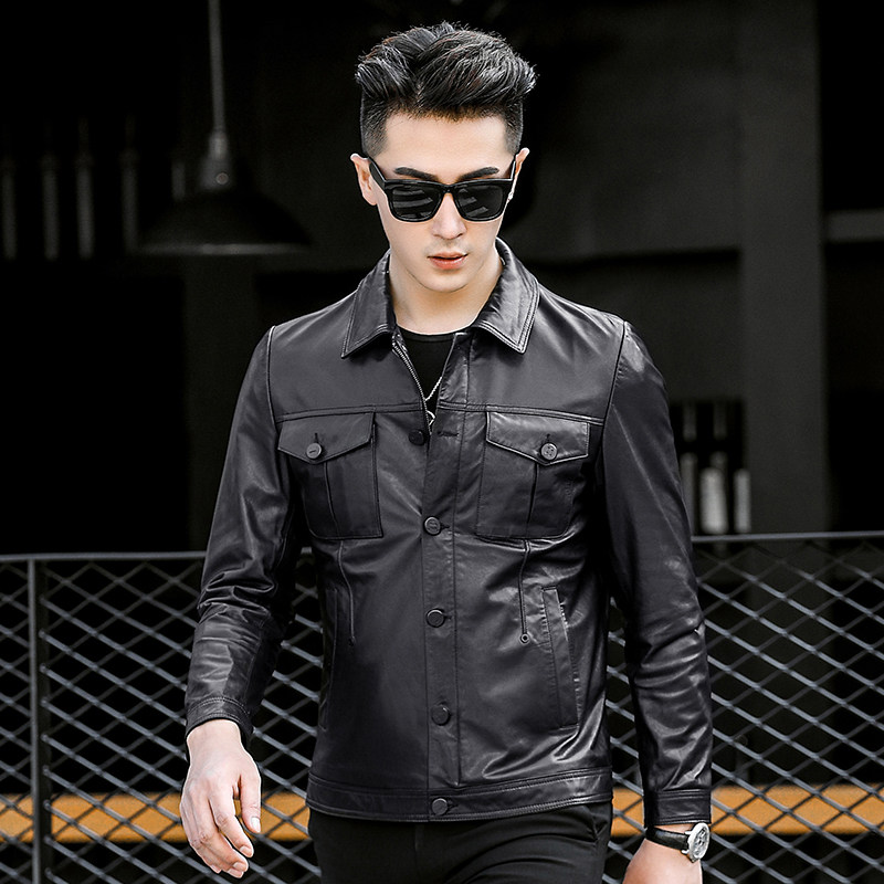 2022 new Haining Mountain sheep leather clothing male genuine leather Han version handsome gas locomotive leather jacket men's trend autumn and winter jacket