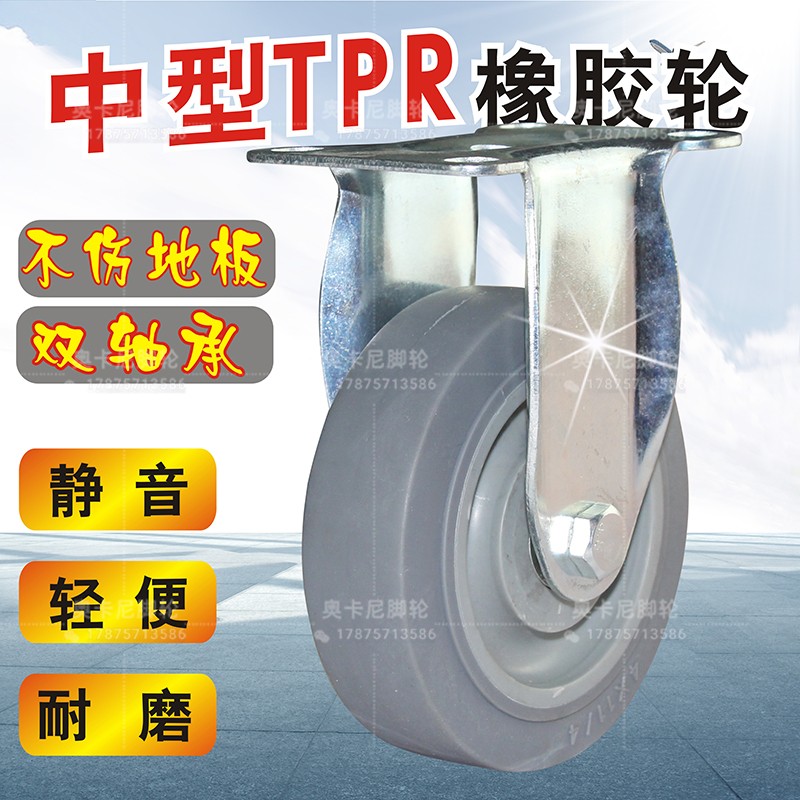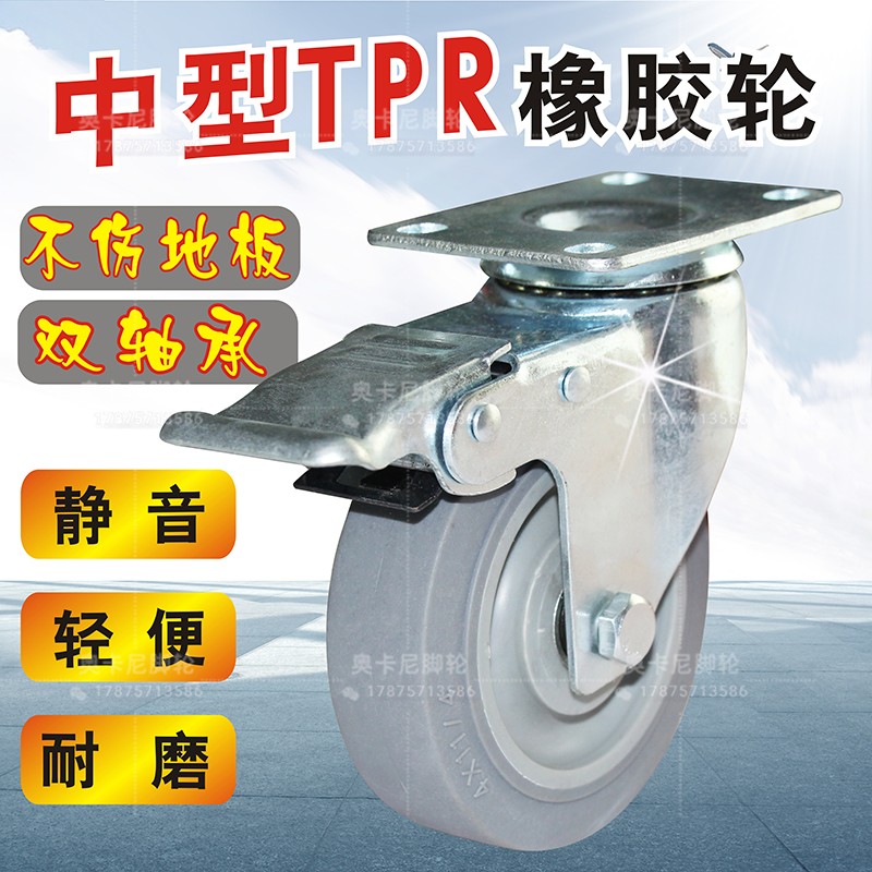 Medium 345-inch TPR Rubber castors mute biaxial universal wheels Industrial trolleys wheel ground floor lacquered special wheels