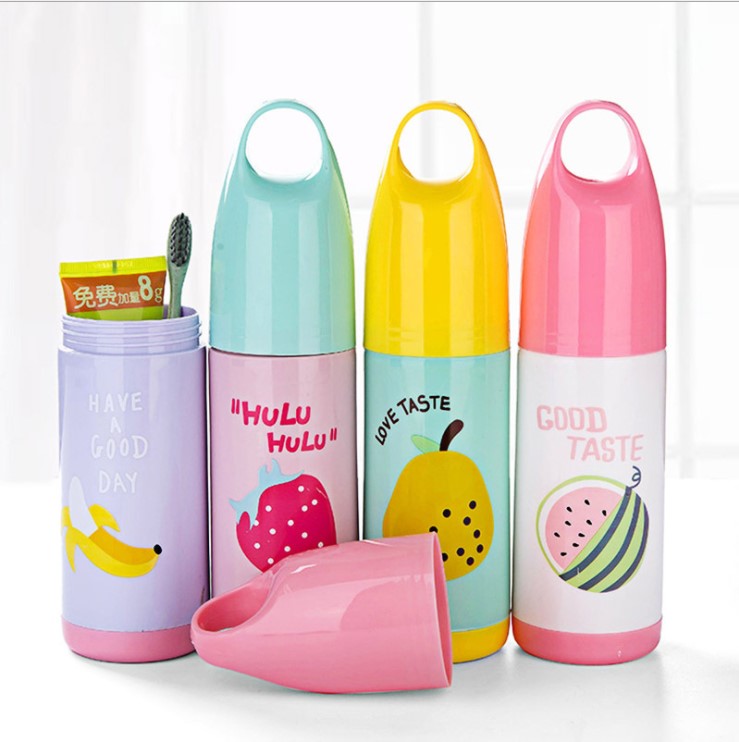 Cute Fruit Pattern Toothbrush Cartridge Cover Toothpaste Toothbrush Barrel Travel Toothbrushing Toiletry Dental containing box Toothbrush Cup