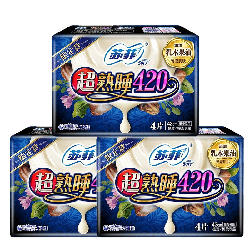 Sophie sanitary napkin female shea fruit night use 420mm 12 pieces aunt towel combination full box batch flagship store official website