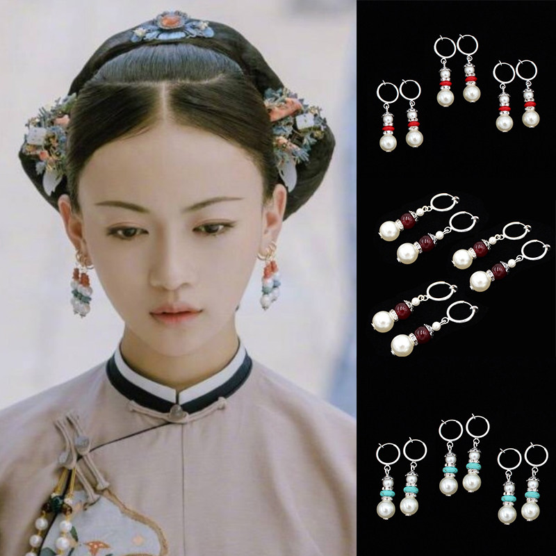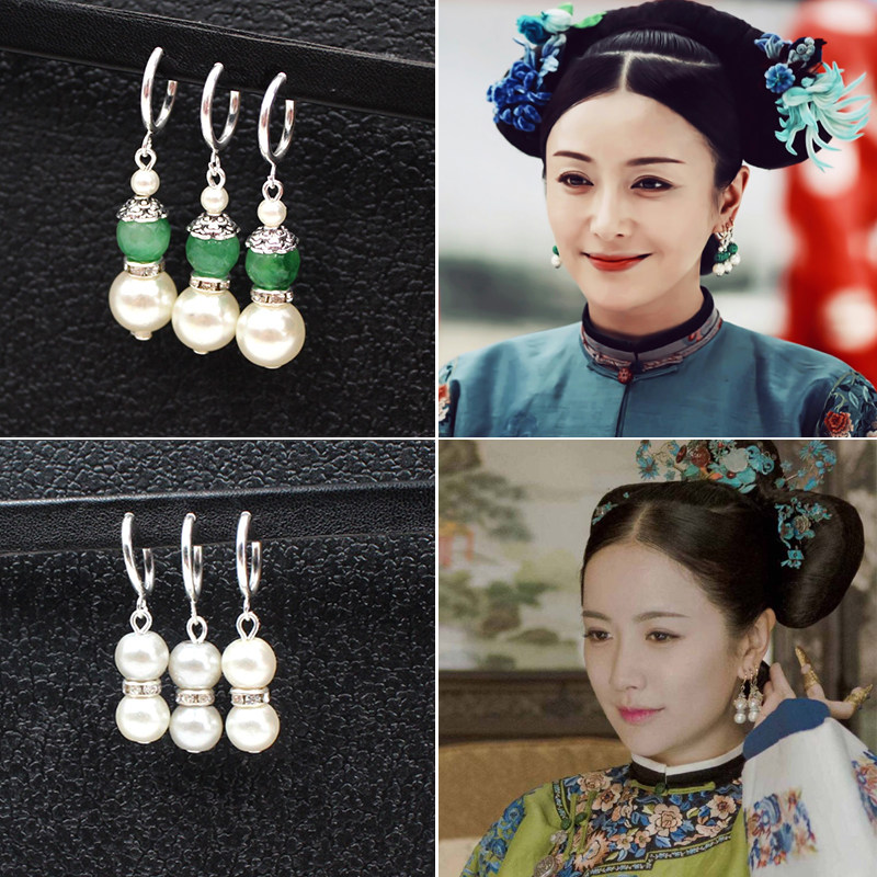 Ancient Costume Earrings, Film and Television Story of Yanxi Palace, Wei Yingluo Earrings and Accessories Qing Dynasty Empress Velvet Flower Headdress - Taobao
