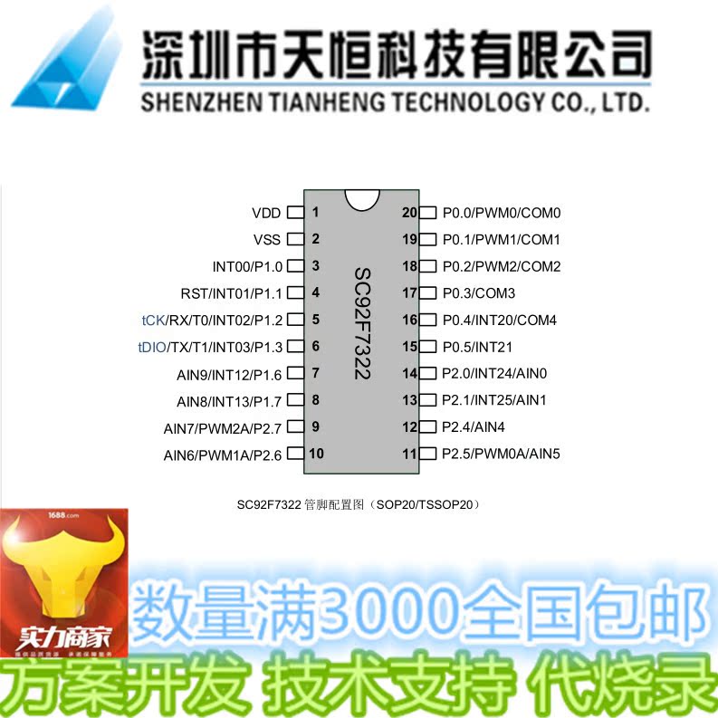 Serial UART single chip solution development 8KFLASH EEPROM ADCPWM Saiyuan SC92F7322X20U