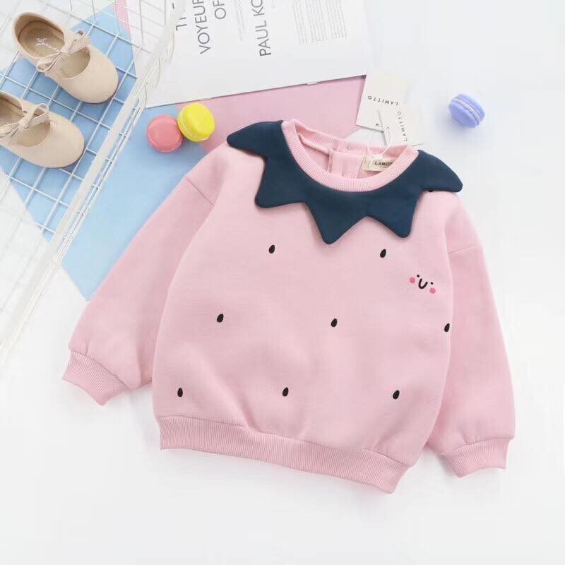 (Joe home) autumn and winter new products male and female child lotus leaf collar pink grip velvet strawberry styling sleeve head casual blouse