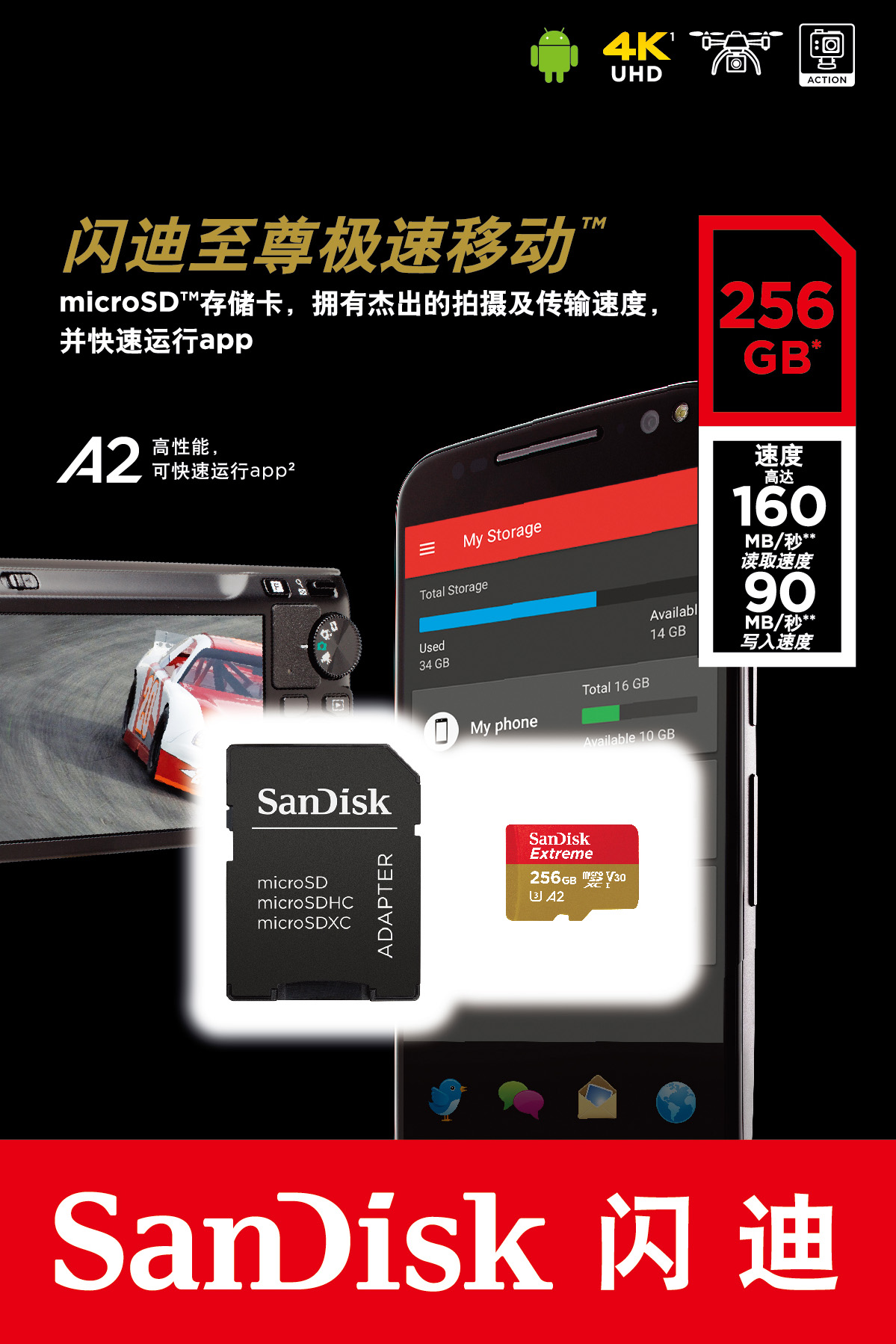 SanDisk 256g memory card high speed micro sd card 256g mobile phone memory 256g card switch drone Gopro tachograph tf card 256g pass