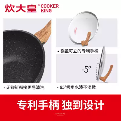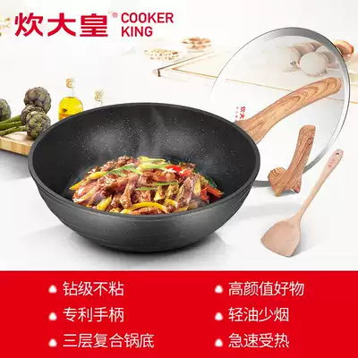 Cooking Emperor rice stone flat-bottomed wok-free smoke light riding non-stick frying pot spoon induction cooker gas 32cm wok