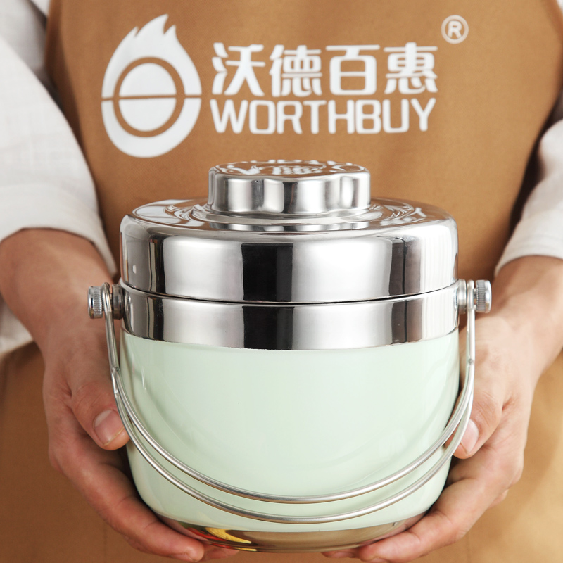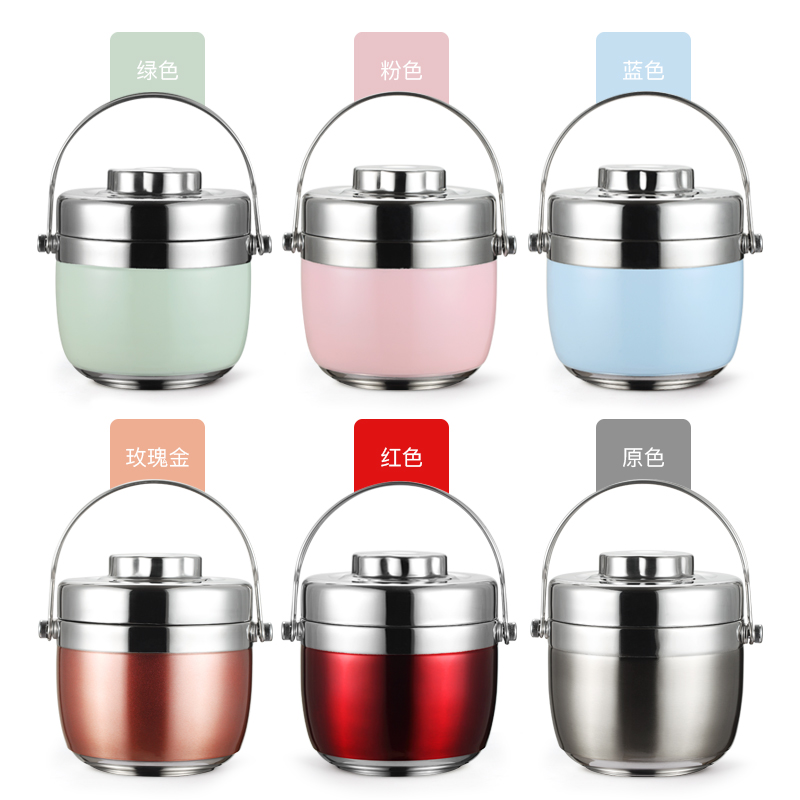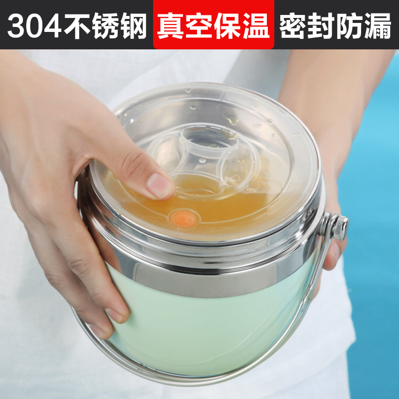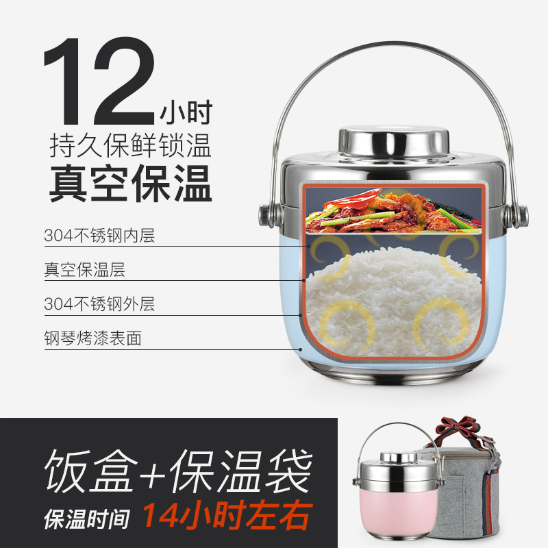 Portable portable 304 stainless steel lunch box 12 hours 1 person student adult double-layer carrying pot female insulation bucket lunch box