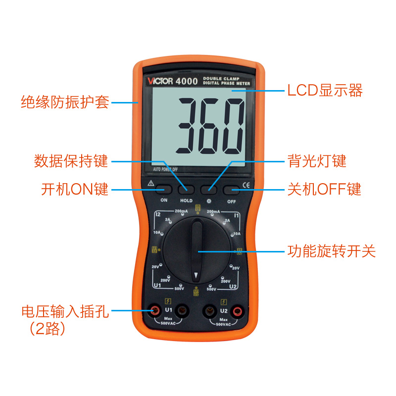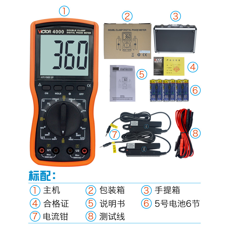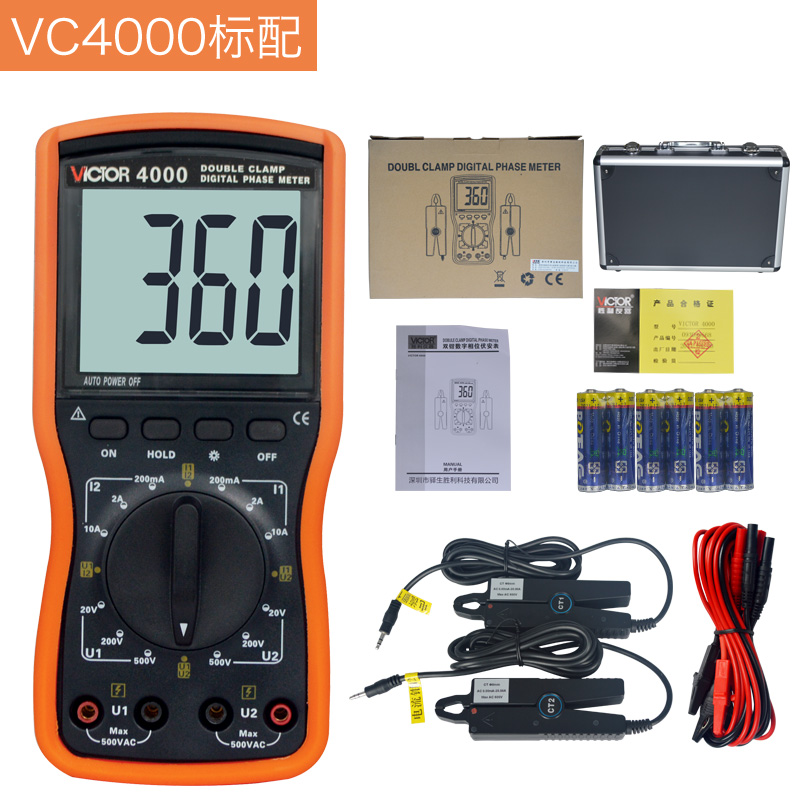 Victory instrument digital double clamp phase voltmeter VC4000 high precision phase detection Three-phase electrical phase sequence detection