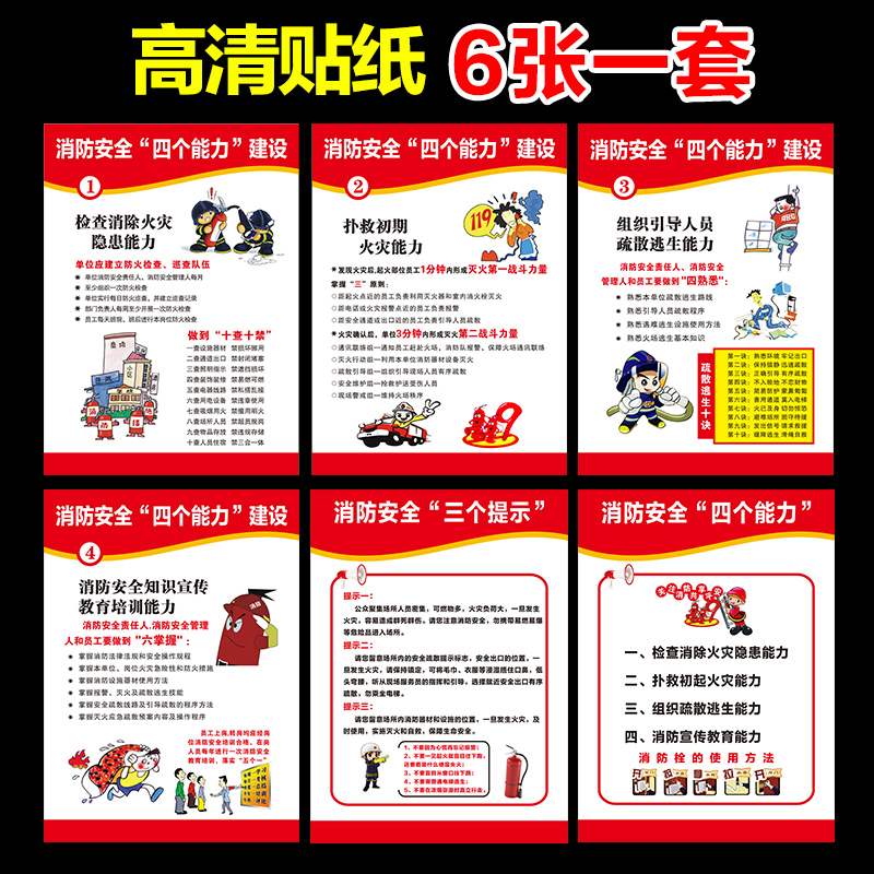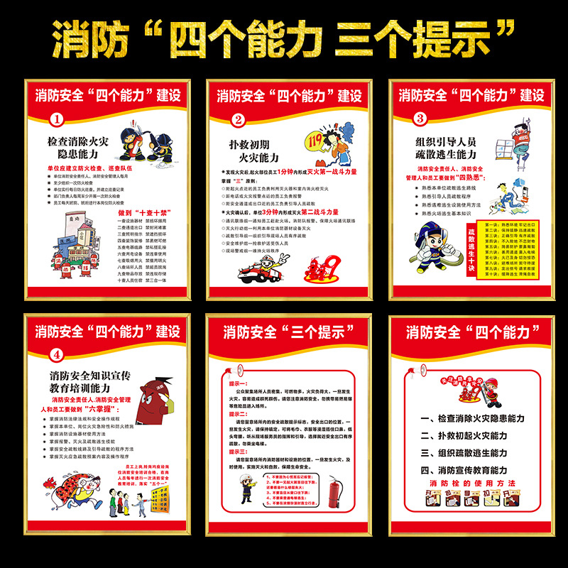 Fire safety "four abilities and three tips" management system card publicity theme painting slogan painting tips supervision regulations knowledge warning signs pictures universal stickers wall stickers custom-made