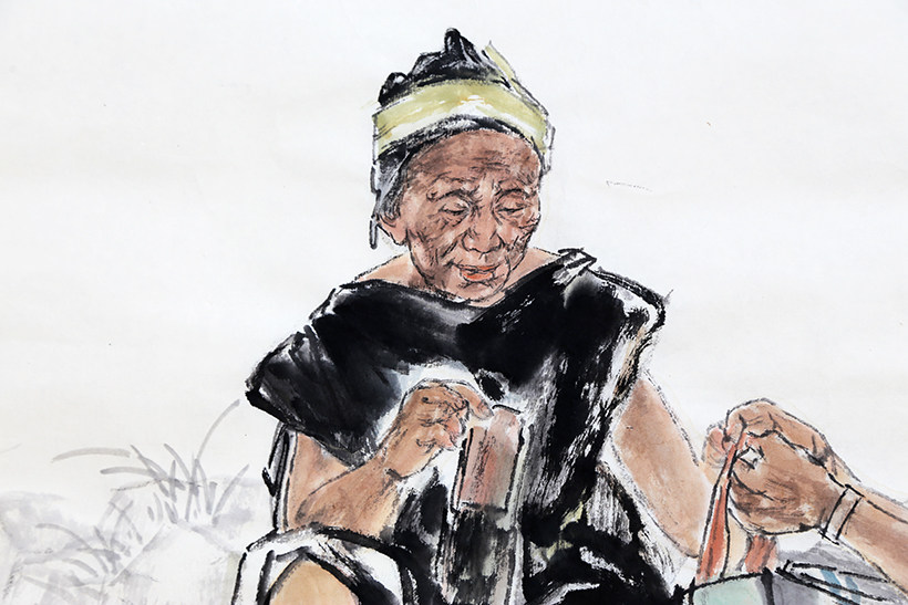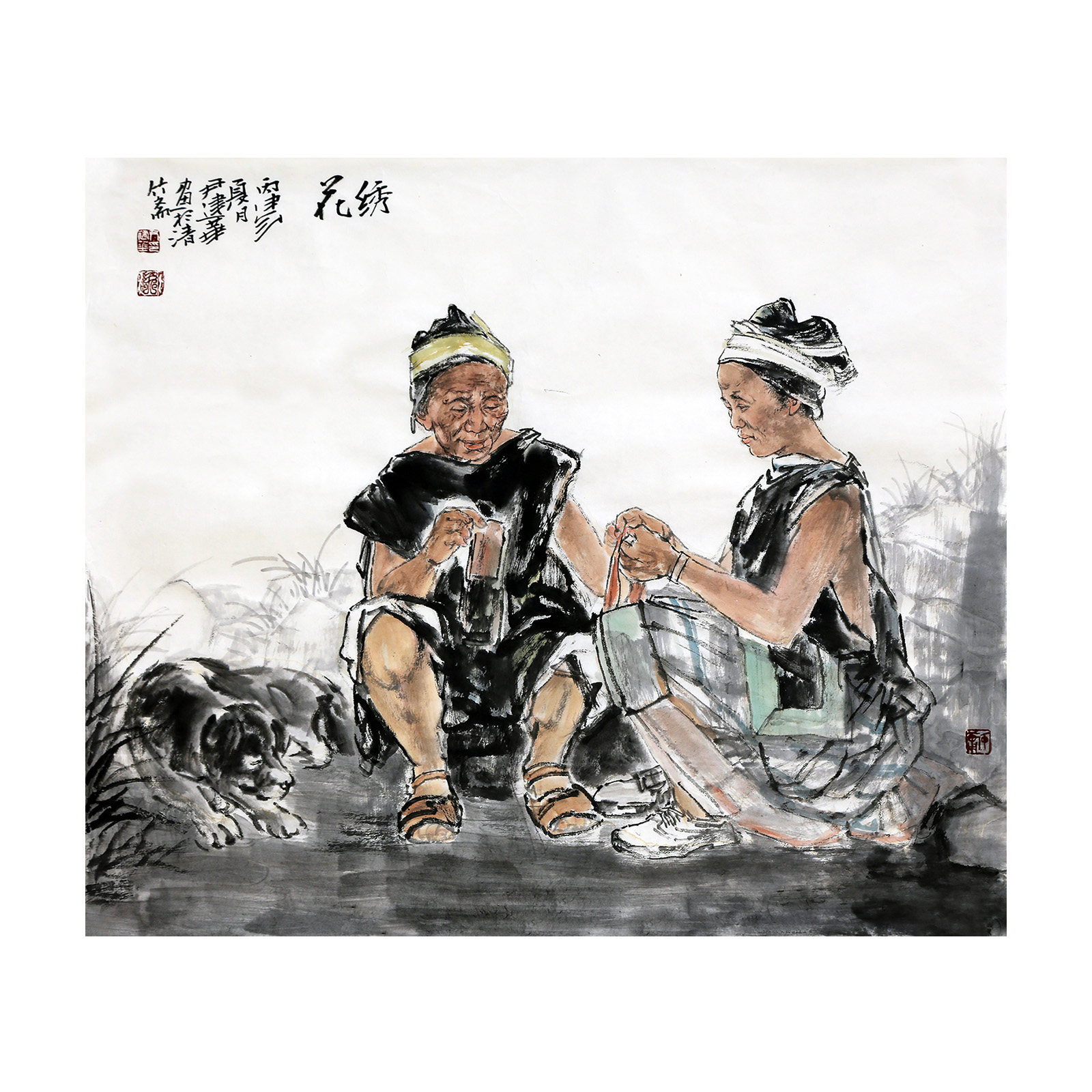 Chinese National Academy of Painting Yin Jianhua's "Embroidery" Chinese Figure Painting Hanging Painting Living Room Decoration Authentic Auction 1217