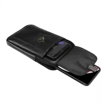 Mobile phone running bag male vertical wear belt leather case buckle hanging waist double multi-function change zipper bag