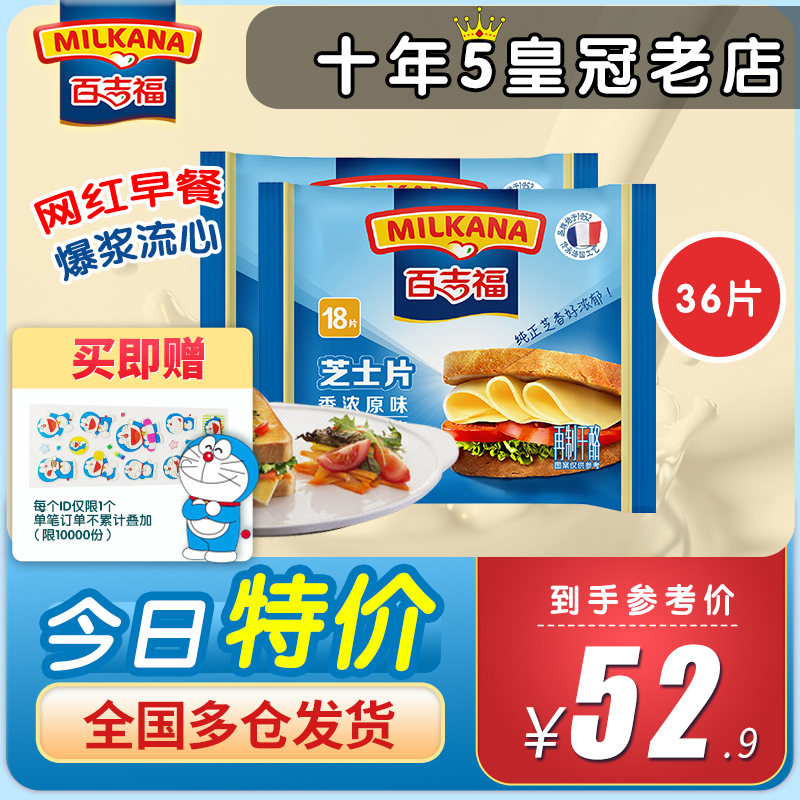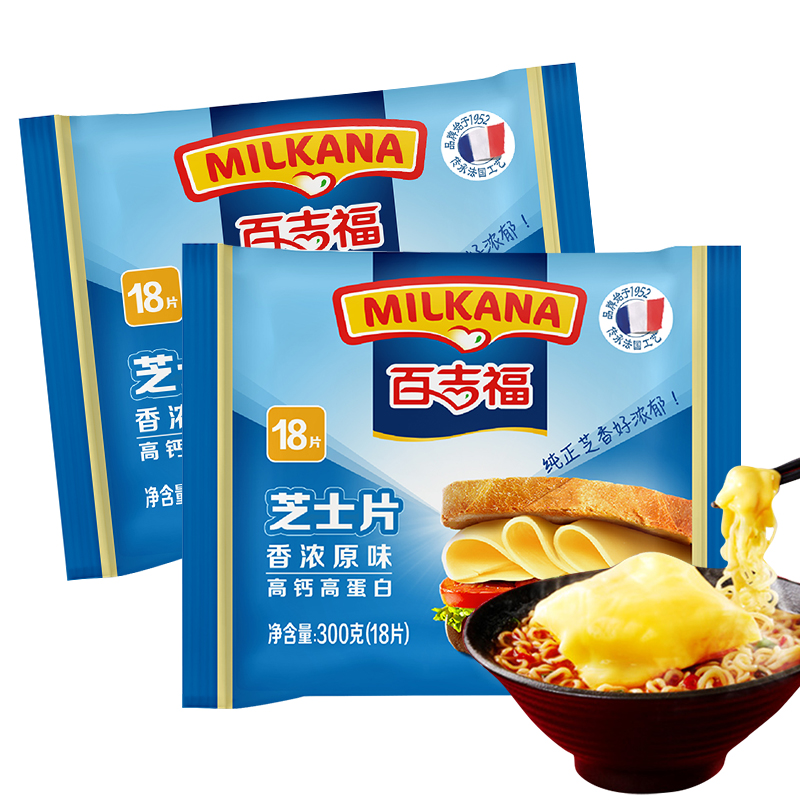 Bajifu fragrant plain cheese slices 300g * 2 bags 36 slices sandwich cheese baked burger instant noodles
