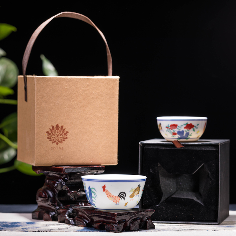 Doucai chicken pot cup Antique Kung Fu Tea cup Household ceramic tea cup Small tea bowl Tea cup Master cup Single cup