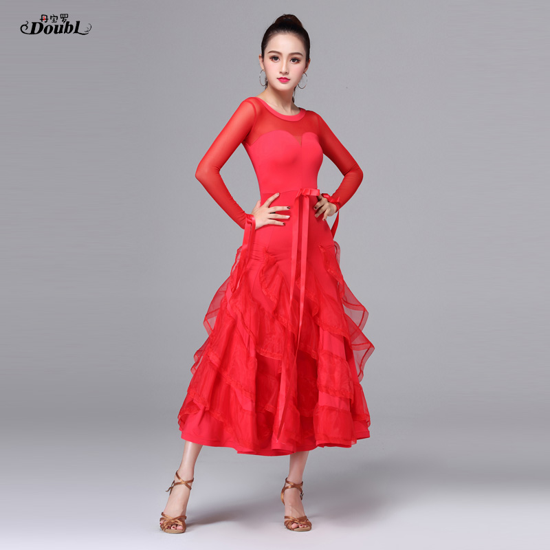 Dambao Roo New Morden Dance Dress Long Sleeve Foreign Dress National Mark Dance Dress Practice Suit Social Dance Waltz Big Swing Dress
