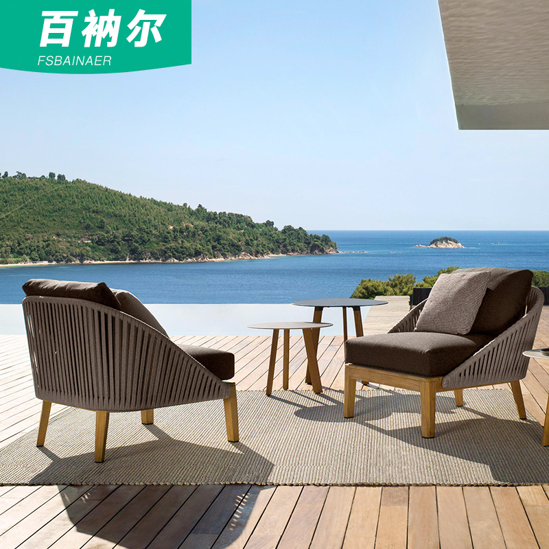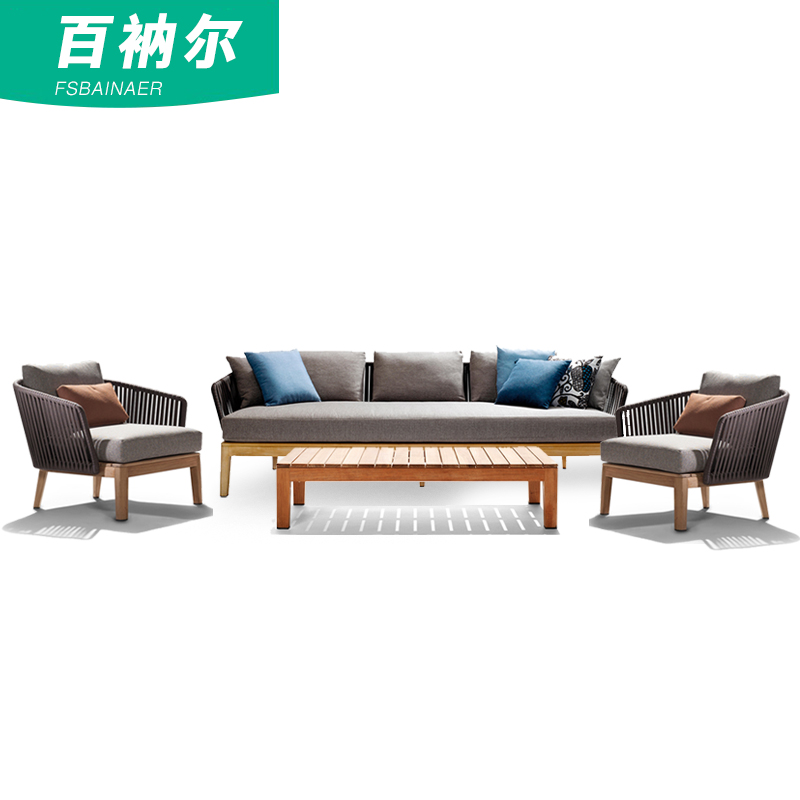 Teak Wood Outdoor Sofa Patio Terrace Furniture Nordic Villa Outdoor Open-air Garden Vines Chair Sofa Tea Table Combinations
