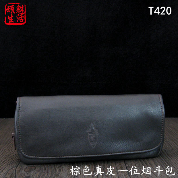 Brown leather one single pipe bag T420 brown leather two pipe bag