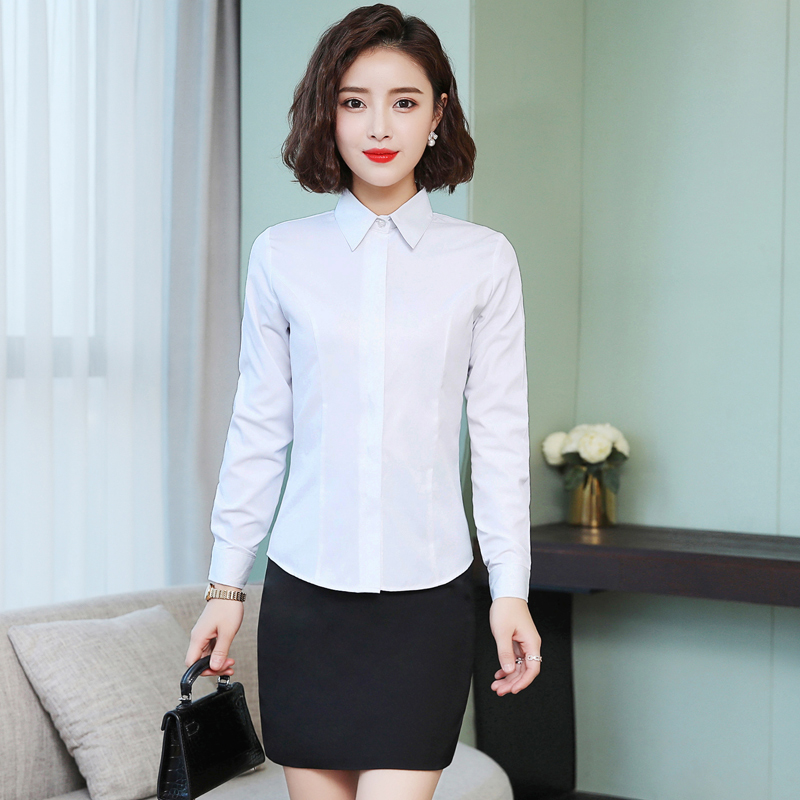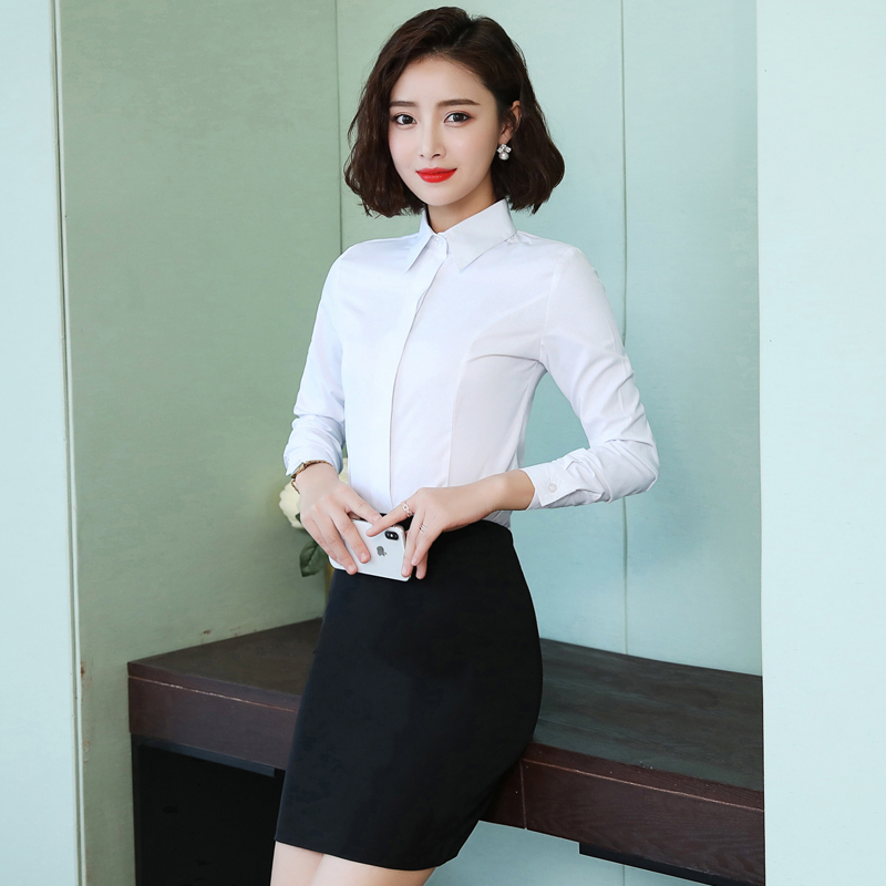 Spring and autumn work clothes white shirt women's long-sleeved women's formal work clothes suit large size white shirt slim-fit tooling