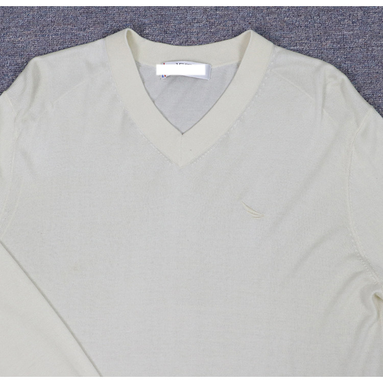 Special 799-mulberry silk fall men's minimalist embroidery V-collar-knitted sweatshirt beige yellow