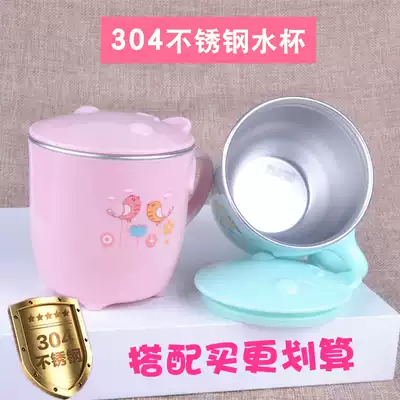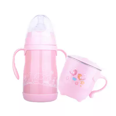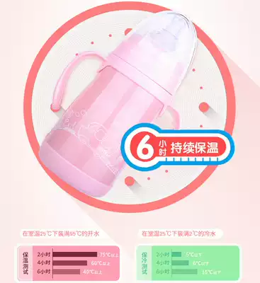 Heat-preserving bottle dual-purpose 304 stainless steel newborn baby drinking cup pot wide mouth anti-drop belt straw