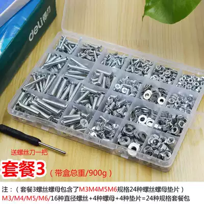 DIY boxed semi-round head cross screw nut nut nut Bolt screw washer M3M4M5 set flat machine self-tapping