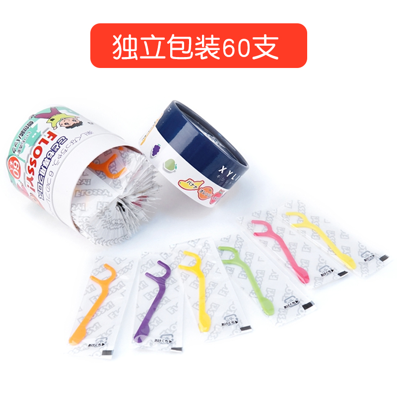 Japanese Flossy Children Ultrafine Floss Rod Baby Flossing Independent Packaging 6 Fruit Flavors 60 Adults