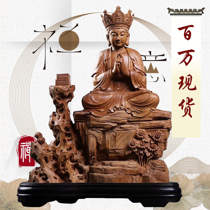 Laoshan sandalwood wood carving Agarwood dedicated to the Buddha Guanyin Guanyin Manjushri Samantabhadra Bodhisattva Small leaf red sandalwood cliff cypress root carving ornaments