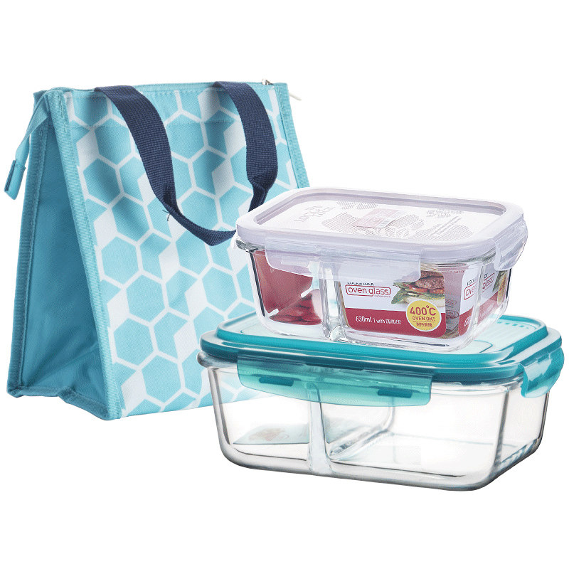Music Buckle Lotte buckle heat-resistant glass refreshing box separating boxed lunch bag Lunch Box Three Sets