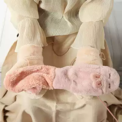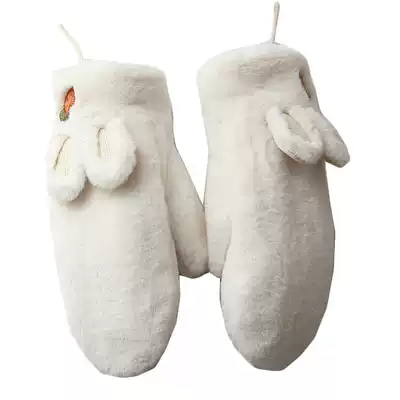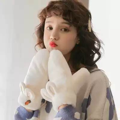 Peijin lanyard plush gloves female winter sweet cute little rabbit plus velvet liner fluff bag finger gloves to keep warm