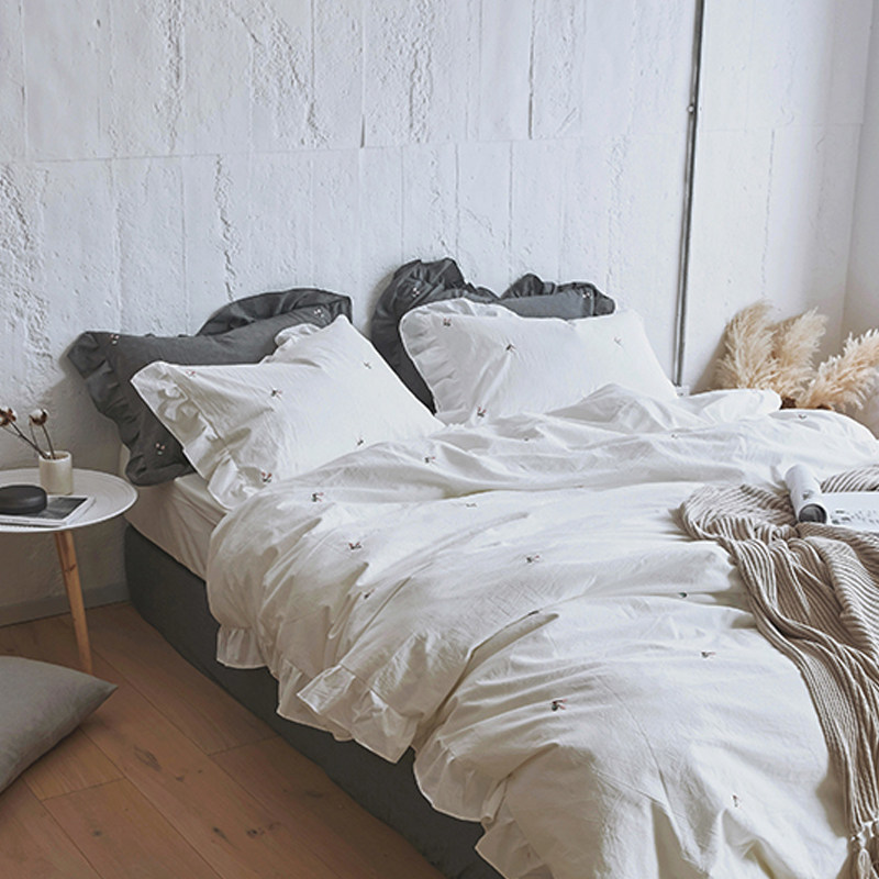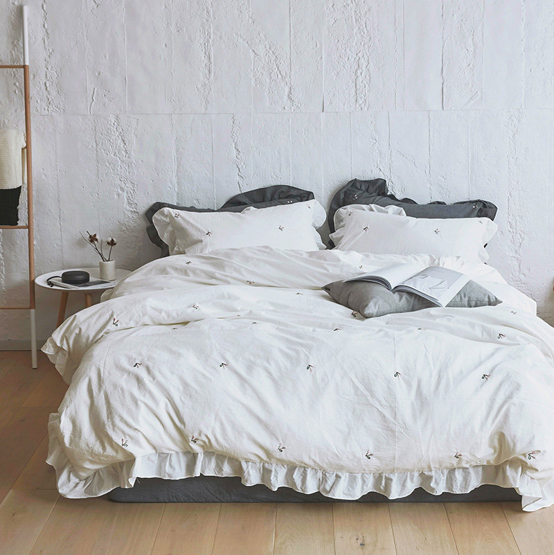 Alley Tricks White Cotton Hemp Four Pieces Bed Set Bed Wash Cotton Pure Cotton Full Cotton Quilt Cover Little Fresh Bed