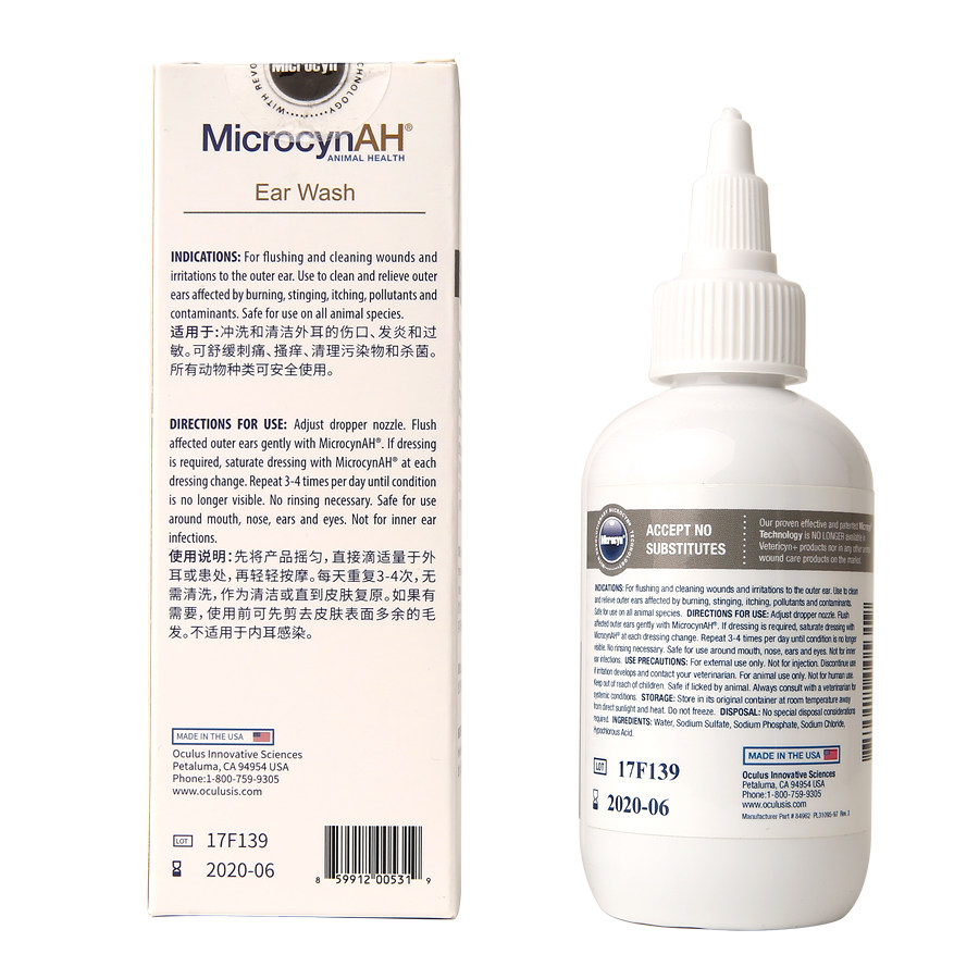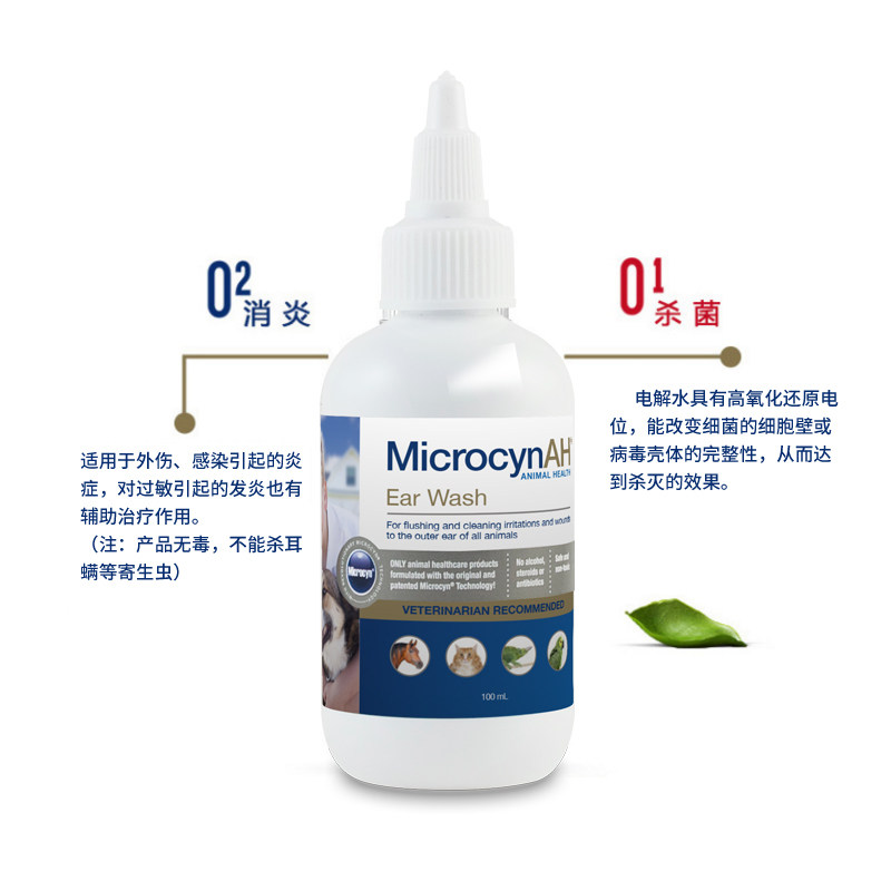 The United States imports McGochen Microcyn ear washing water to remove ear mites, sterilize and deodorize pet dog ears and relieve itching