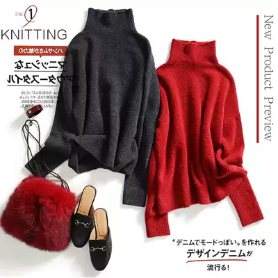 Autumn and winter ladies elegant retro semi-high collar big red thick pullover bottomed sweater simple temperament lazy sweater