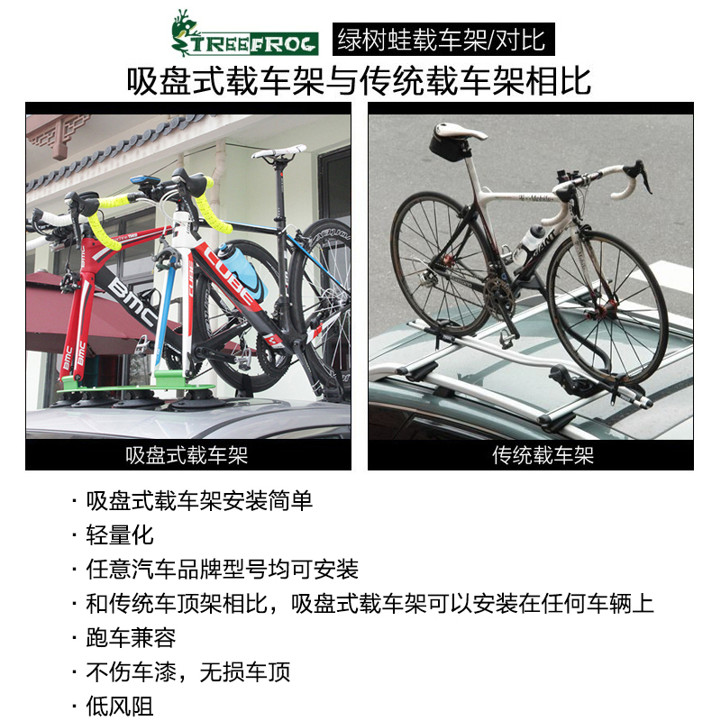 treefrog car top frame road bike mountain bike Suction cup bike carrier frame T1 T2