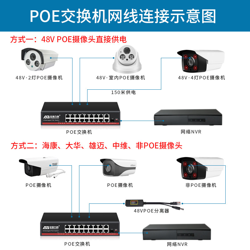 National Label 16 mouth one thousand trillion poe switch 48V Power Supply Monitoring Internet Haikang Greater China Camera Equipment Wireless AP
