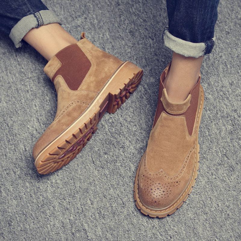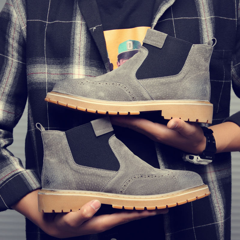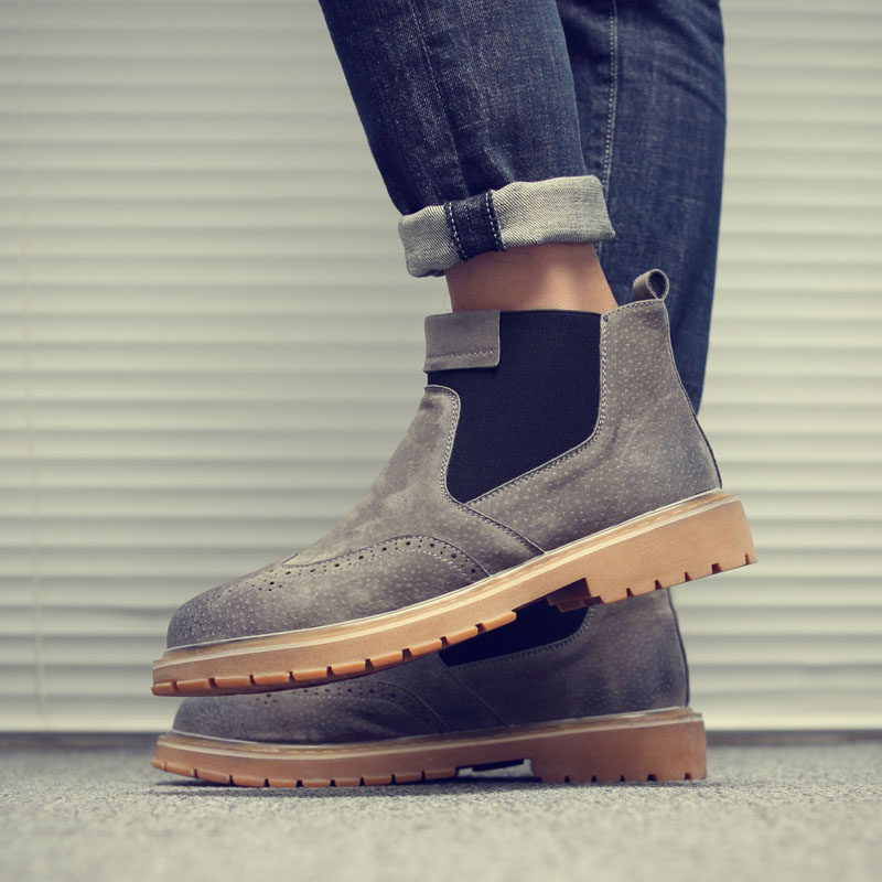 Winter trendy men's boots mid-barrel Martin boots men's short boots British style leather wild men's tooling high-barreled Martin shoes