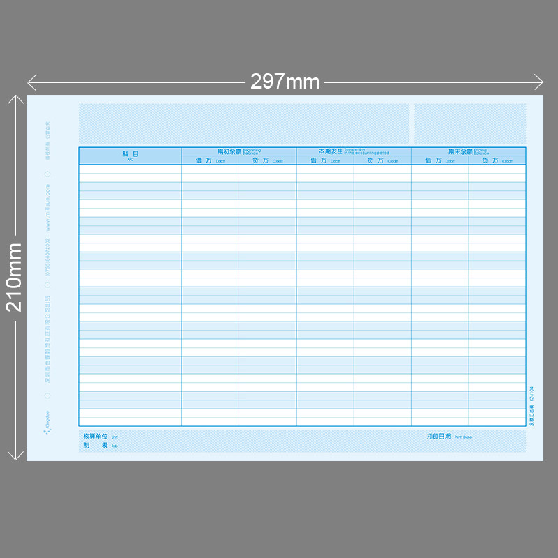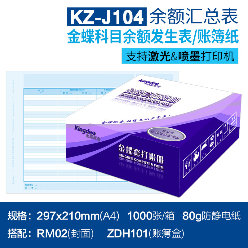 Kingdee KZ-J104 Balance Summary Statement Book Account Statement 297x210 Accounting software set Copy paper A4