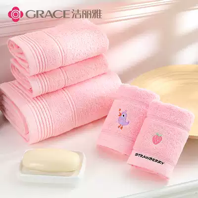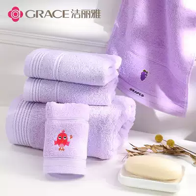 Jielia bath towel towel children's towel cotton household men and women cute Korean children's family combination set five sets