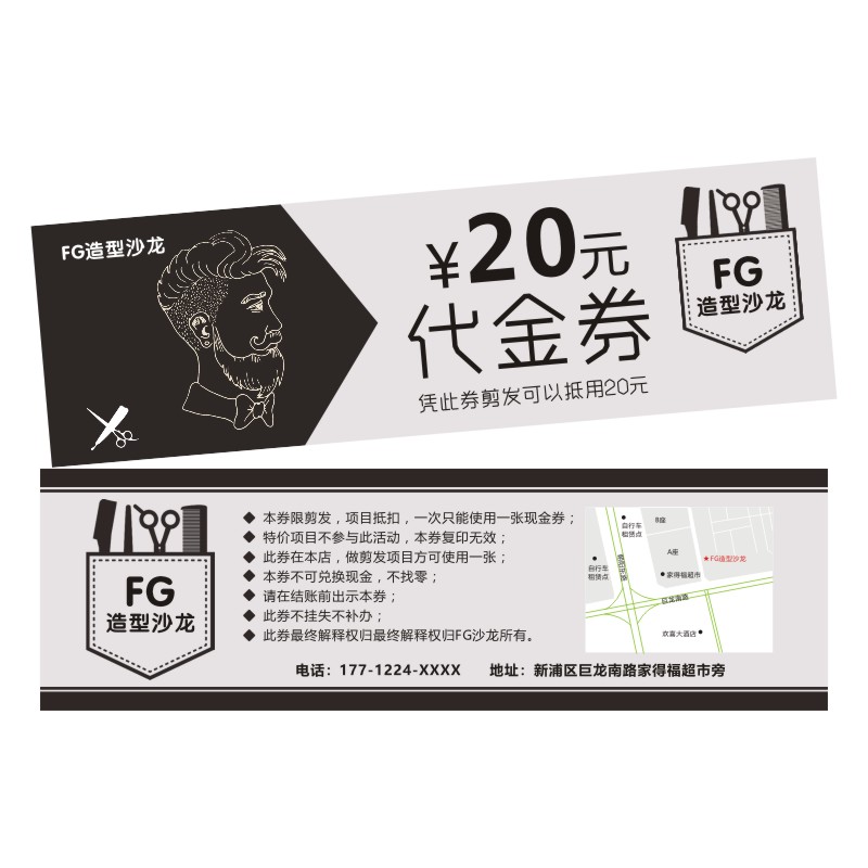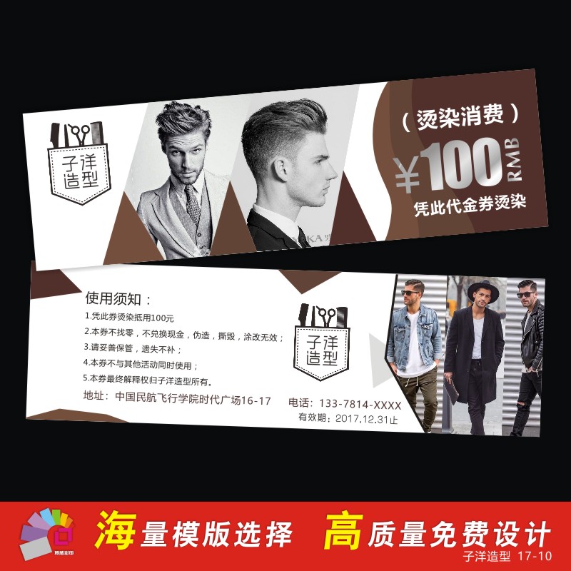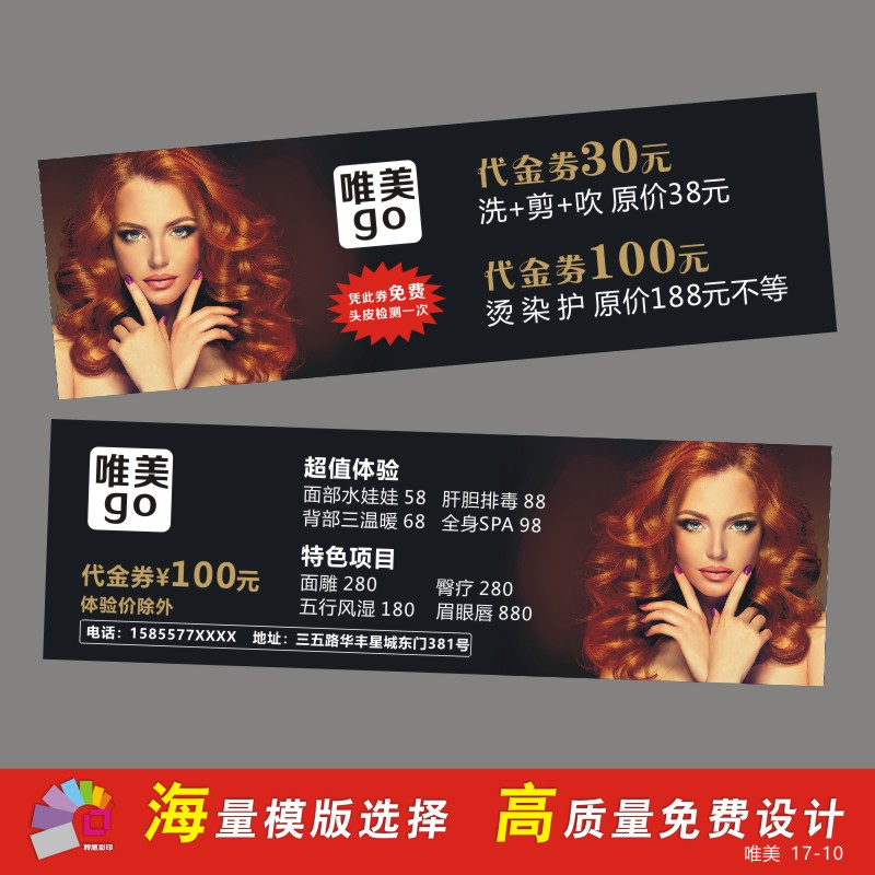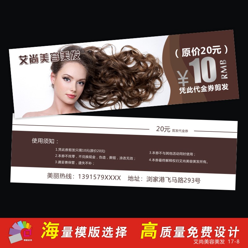 Coupon making discount for hot hair stamping stamp opening debug roll custom hairdresser advertising card design