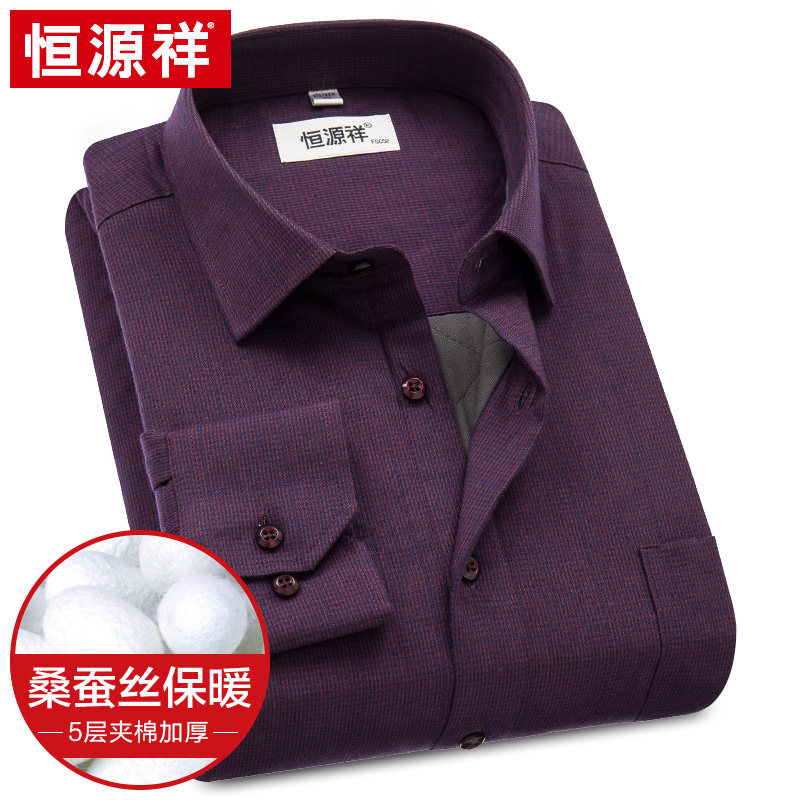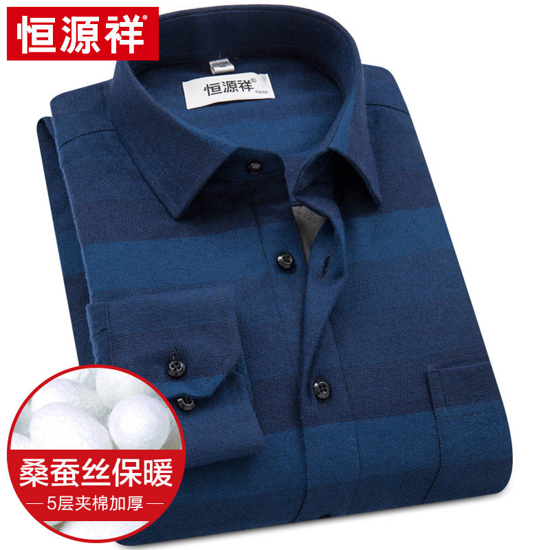 Hengyuan Xiang Pure Cotton Warm Shirt Male Thickening Winter New Business Plaid Middle-aged Dad Man Long Sleeve Shirt