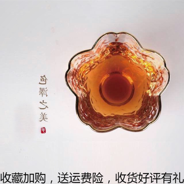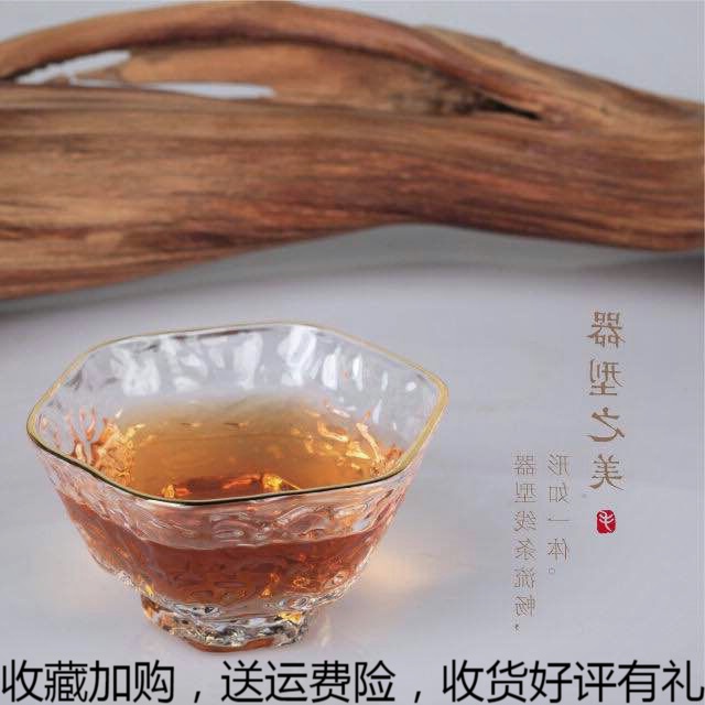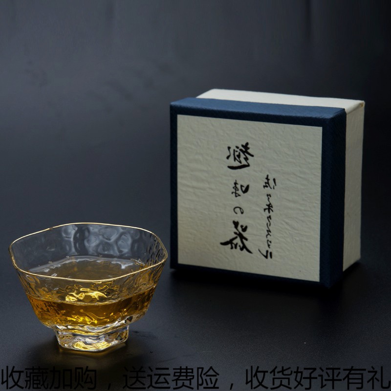 Japan-style hexagonal Phnom Penh Pink cup Heat-resistant glass hammer heat-resistant and explosion-proof small tea cup Kung fu tea with crystal gold thread cup