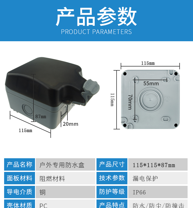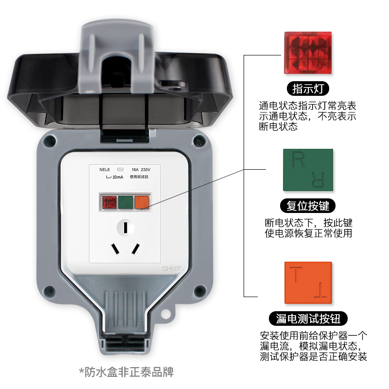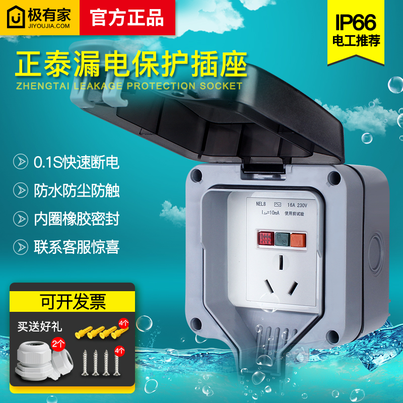 Outdoor triple-hole waterproof socket IP66 built in positive Tai earth leakage protection bathroom garden Anti-rain 16A Ming fit