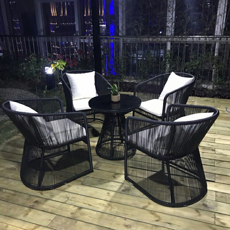 Outdoor table and chairs patio open water waterproof sunscreen with umbrella rattan furniture composition Balcony Casual Rattan Chair Three Sets