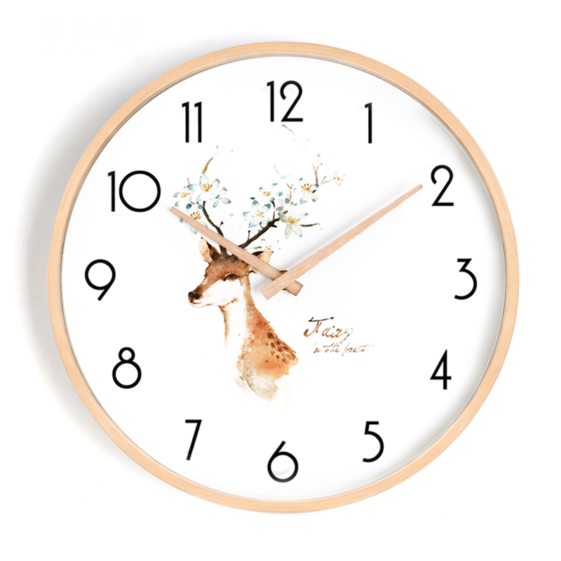 Nordic wall clock home living room hanging watch simple wooden clock solid wood clock muted log bedroom Japanese hanging wall