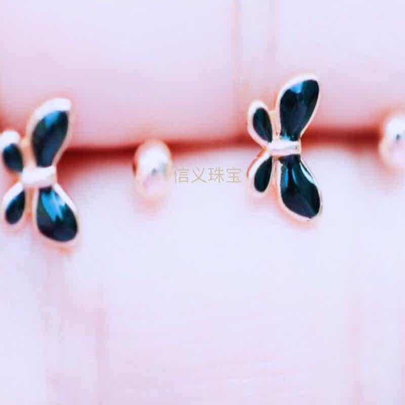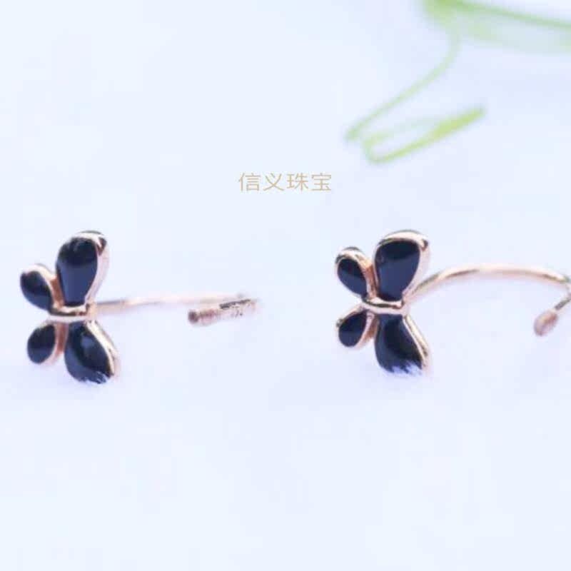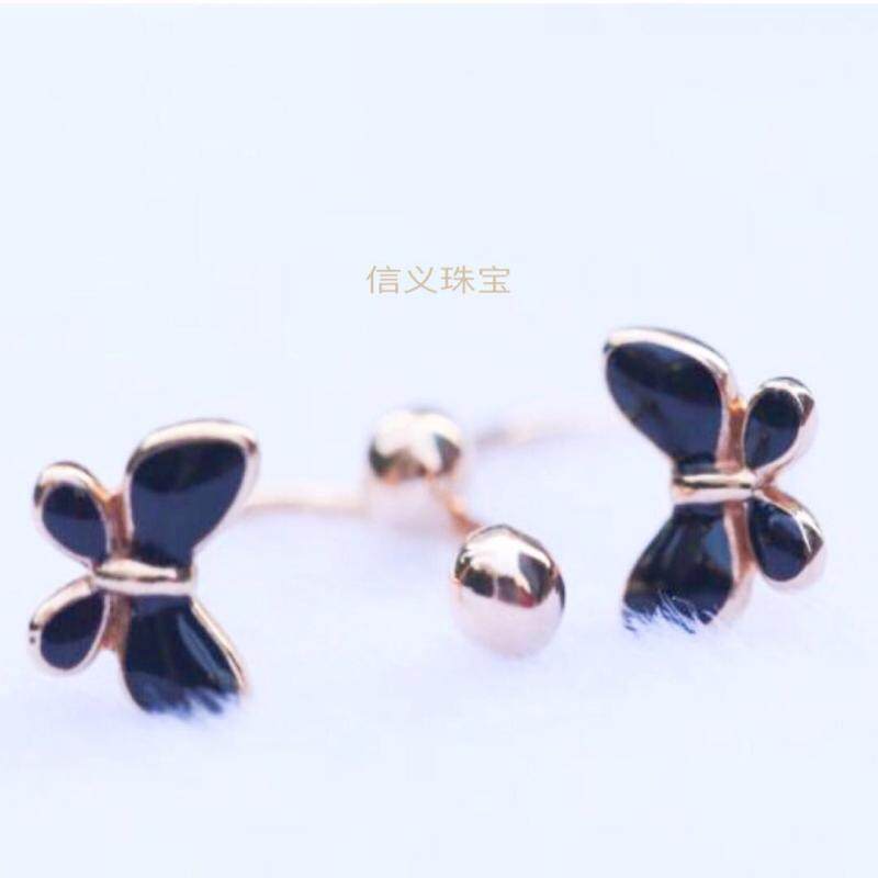 Color gold 18K rose gold Butterfly U-shaped screw stud enameled ear bone quality wild non-allergenic 750
