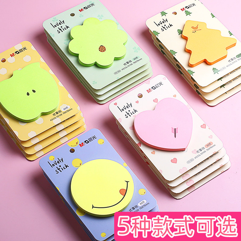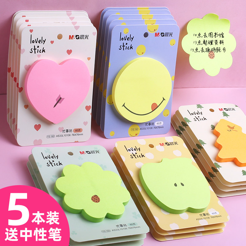 Morning Post-it Cute Cartoon Girl Students Use Fluorescent Smiling Color Smiling Heart-shaped Love Sticker Creative Net Red Shake Tone Post-it Sticker Message Self-adhesive Best Sticker Milk Tea Shop Handwritten Sticker