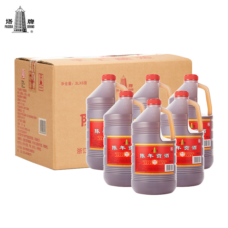 Tower yellow wine 3 years Chen Gong wine 3L*6 barrels*2 cases of whole flower sculpture authentic Shaoxing Old Ajiao special kettle