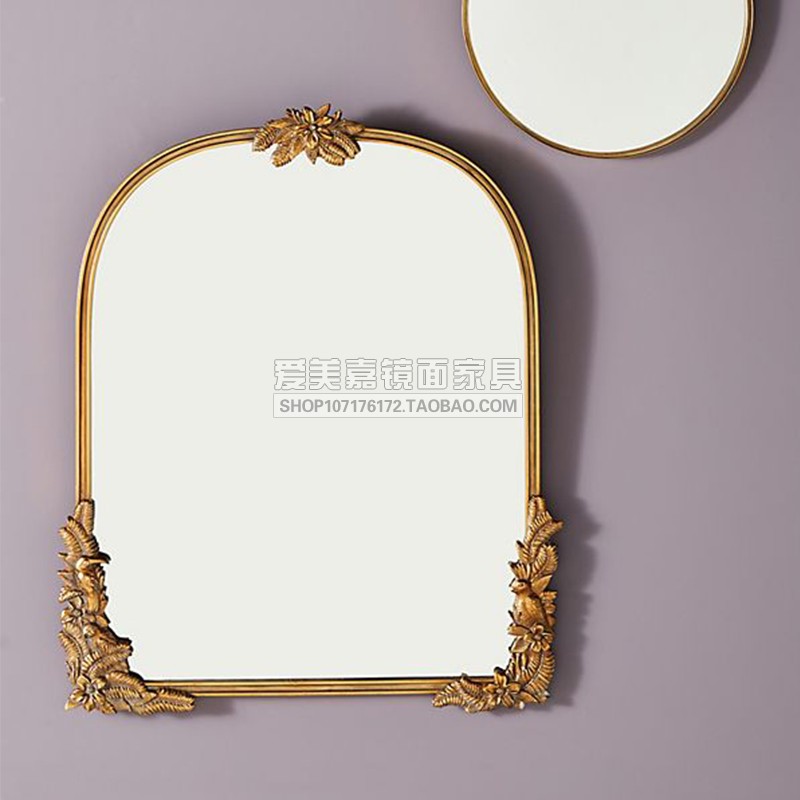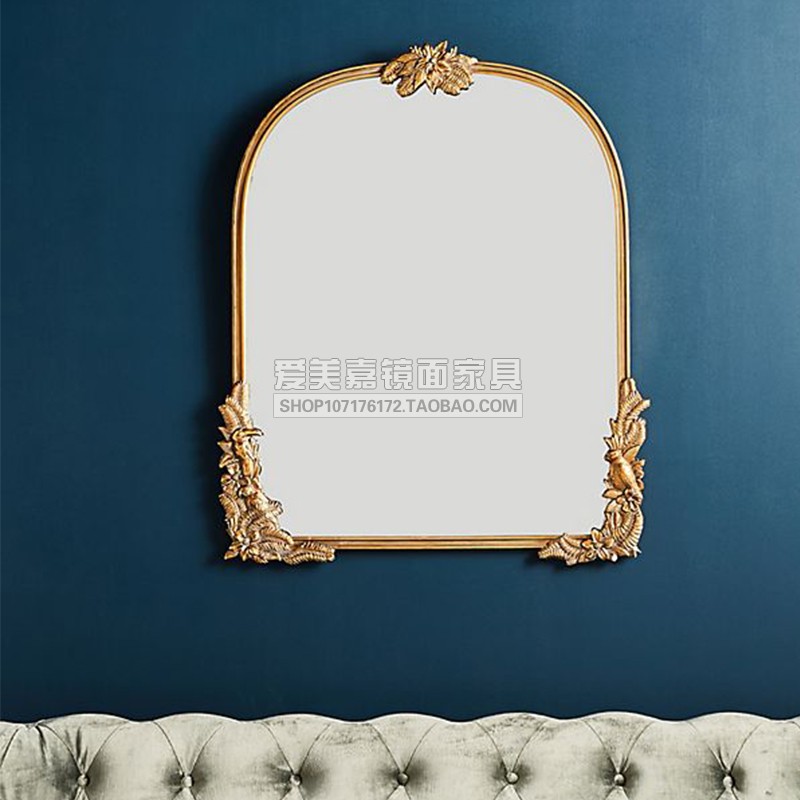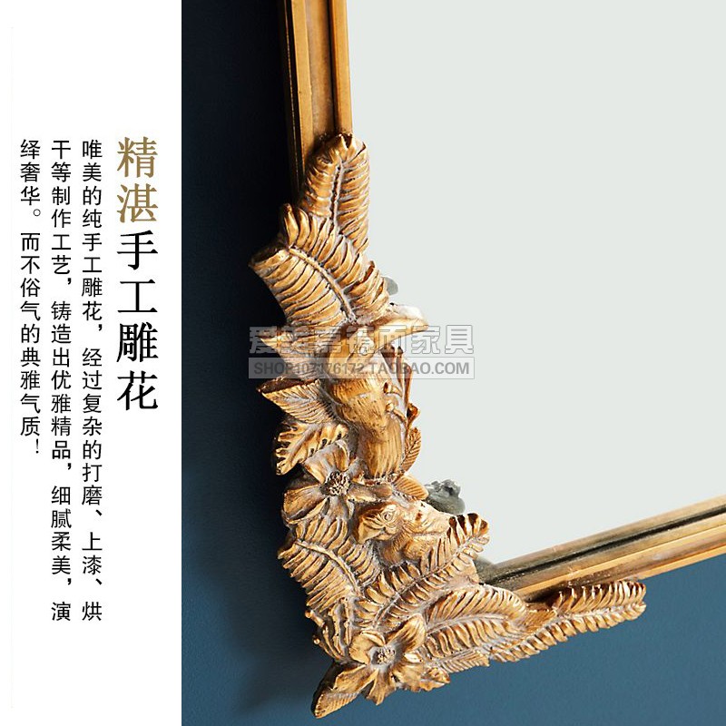 European-style wall-mounted decorative mirror bedroom dressing table carved makeup mirror living room background wall porch art mirror custom