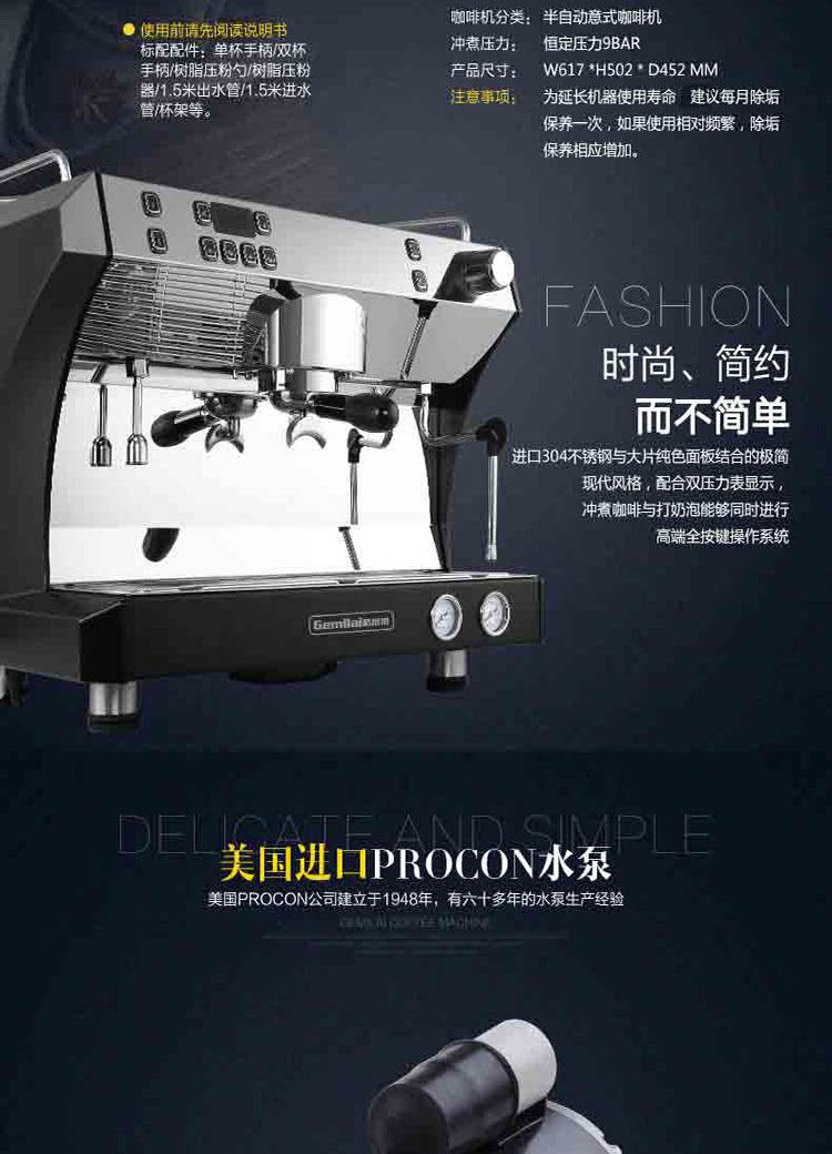 Gemmelis CRM3100D semi-automatic coffee machine single head commercial professional Italian double boiler beating milk foam rotation